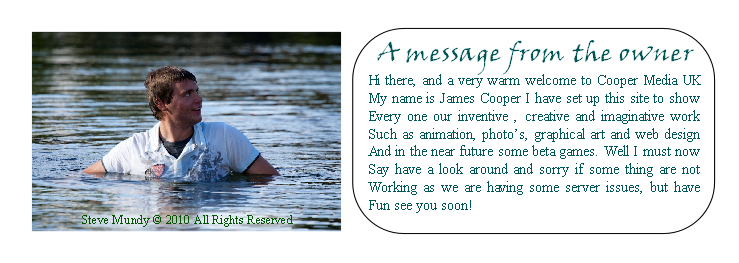 If you need anything game-wise, Graphic art related or even to do with films and music; I'm your man. I've been best friends with the legend that is James Cooper for a long time now, and let me tell you; he is one of the coolest people I know (except when he breaks locks with the wrong keys... but that's for another story he he) and I trust him with my life (on more then one occasion sadly concerning a life jacket and a canoe. again another story), but when it comes to quality, he is the business.